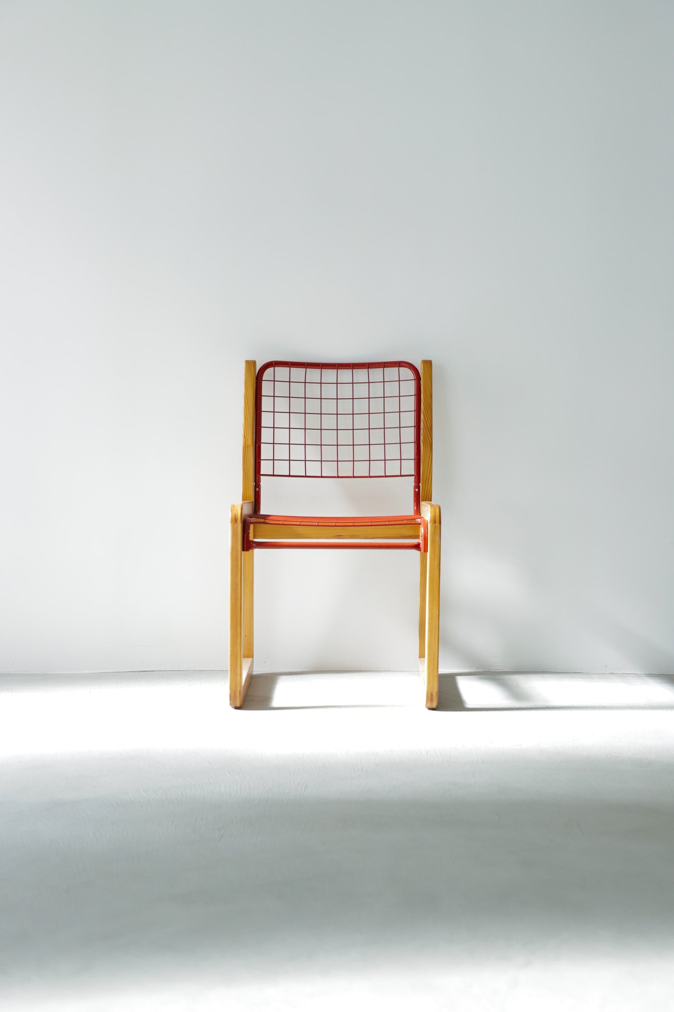 北欧産のパインと、グリッドのワイヤースチールをコンビネーションすることで生まれる違和感によるデザインがとても新鮮。