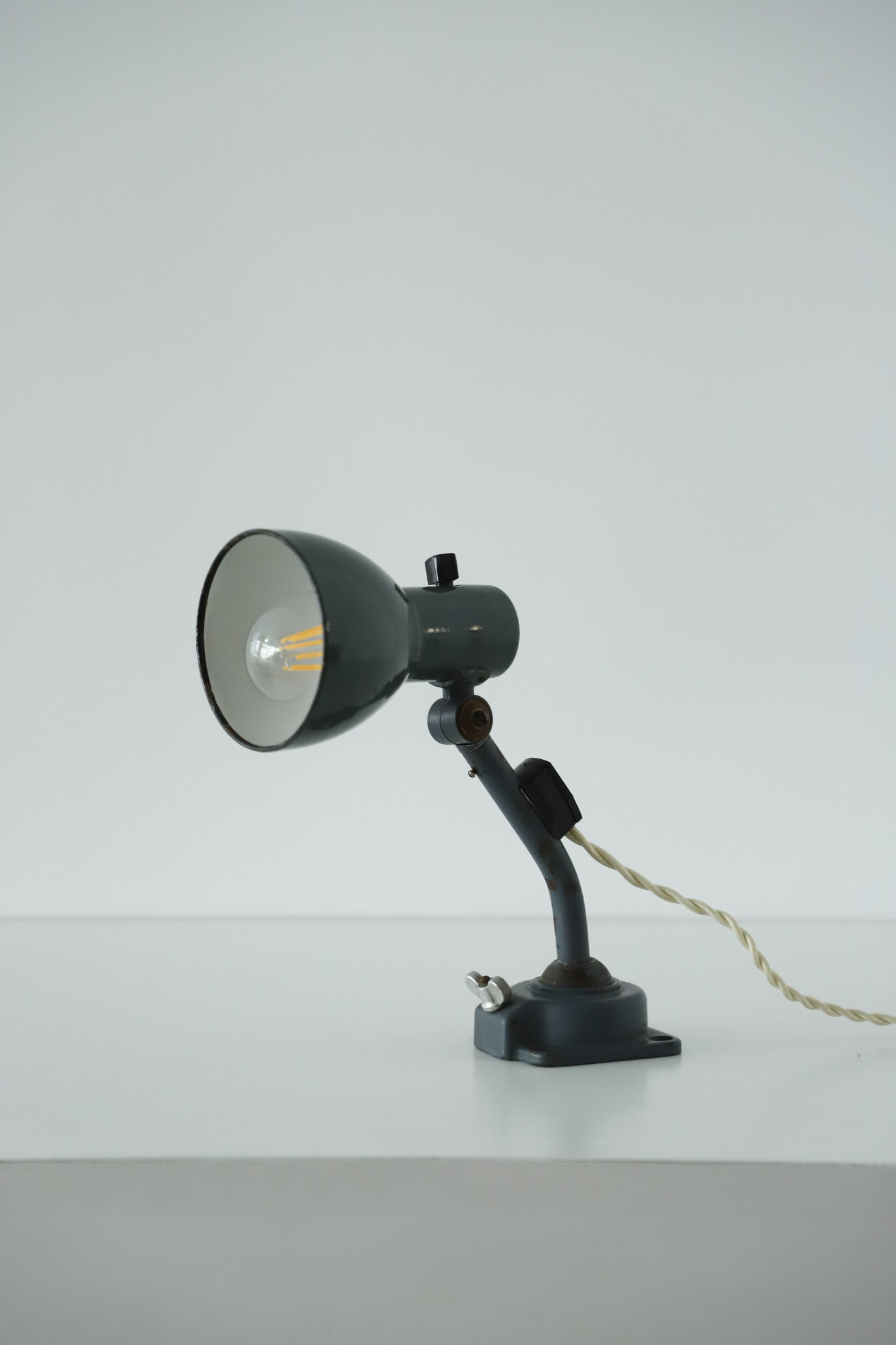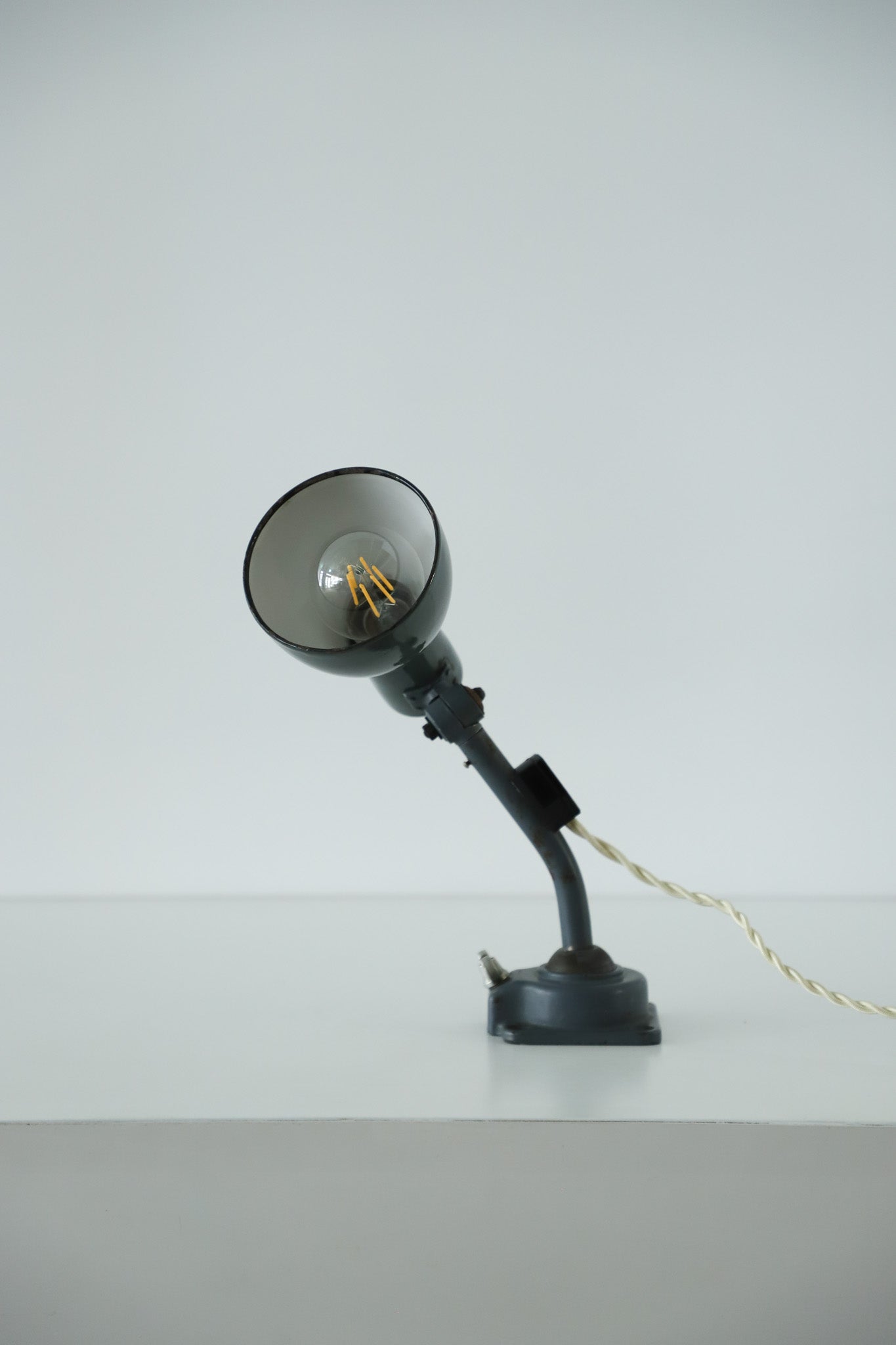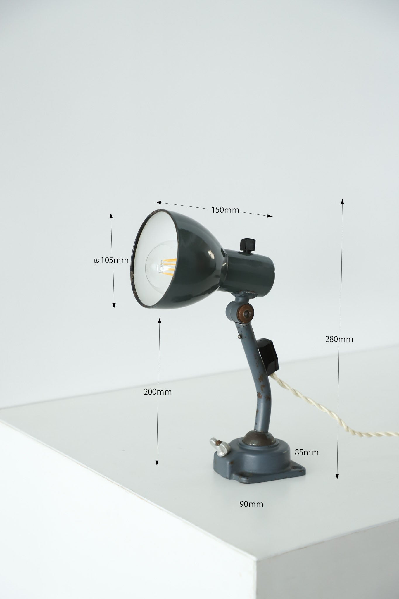 ボールジョイントやアーム、シェードリムにペイントロスがございますが、年代を考慮するととても良いコンディションかと思います。 コード・コンセントジャックは日本の新品に交換済みです。 電球の口金はE26・40Wの物をご使用くださいませ。