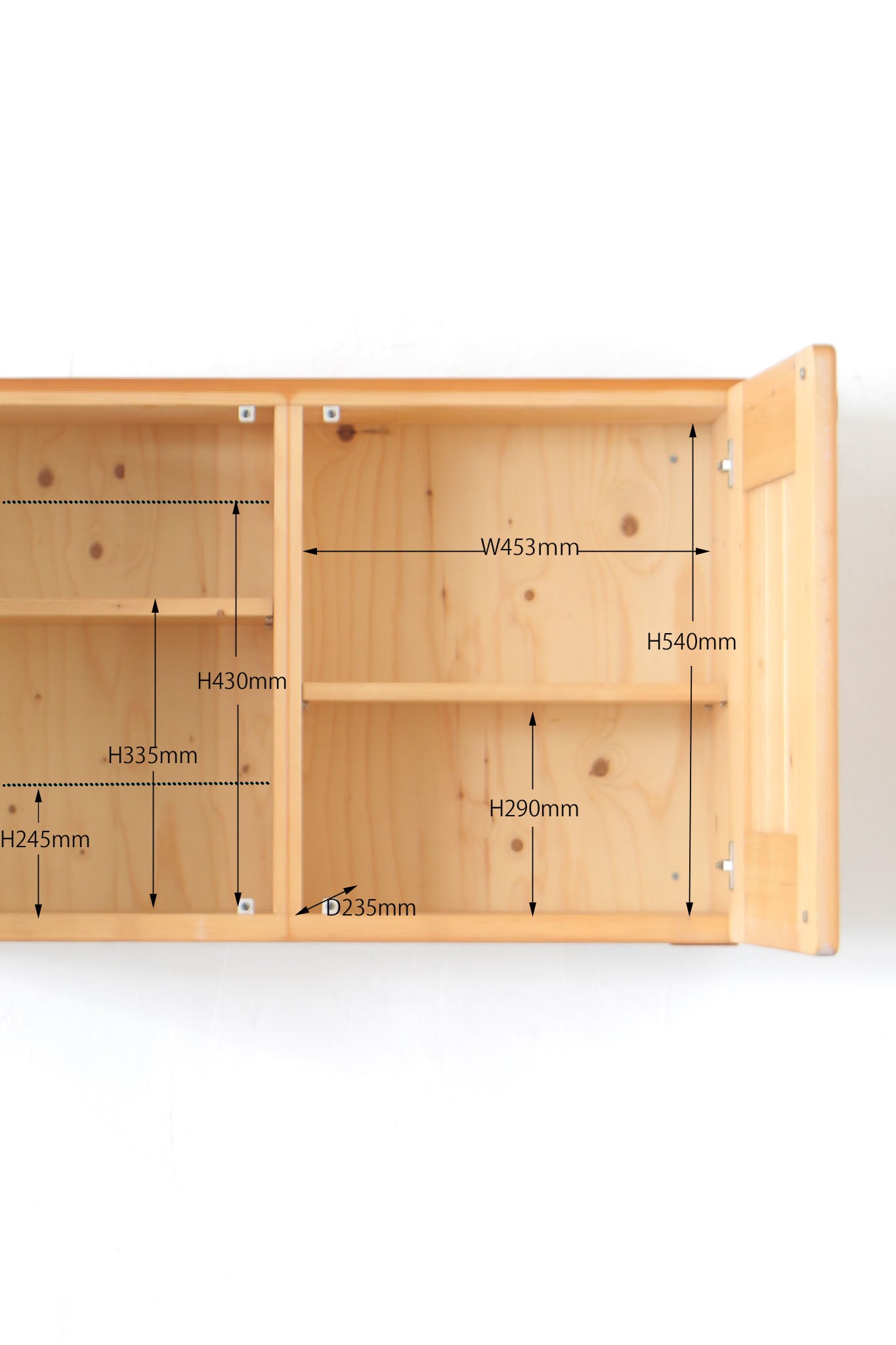 壁に取り付けるキャビネットのため内部にビス穴が4か所ございます。