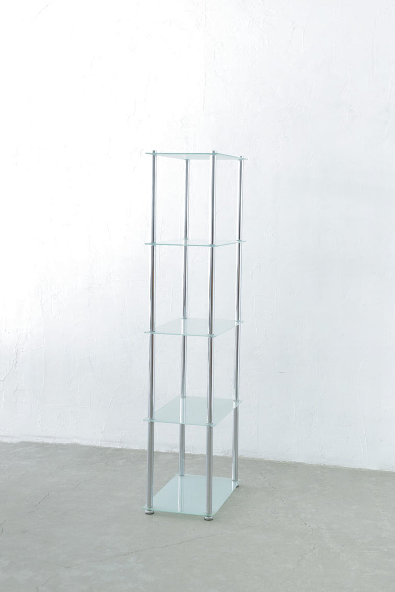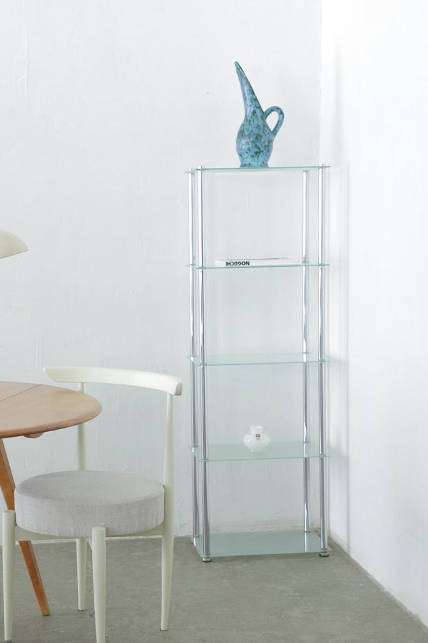 個性の強いアイテムを中和し、バランスを保ってくれる存在のガラスシェルフです。